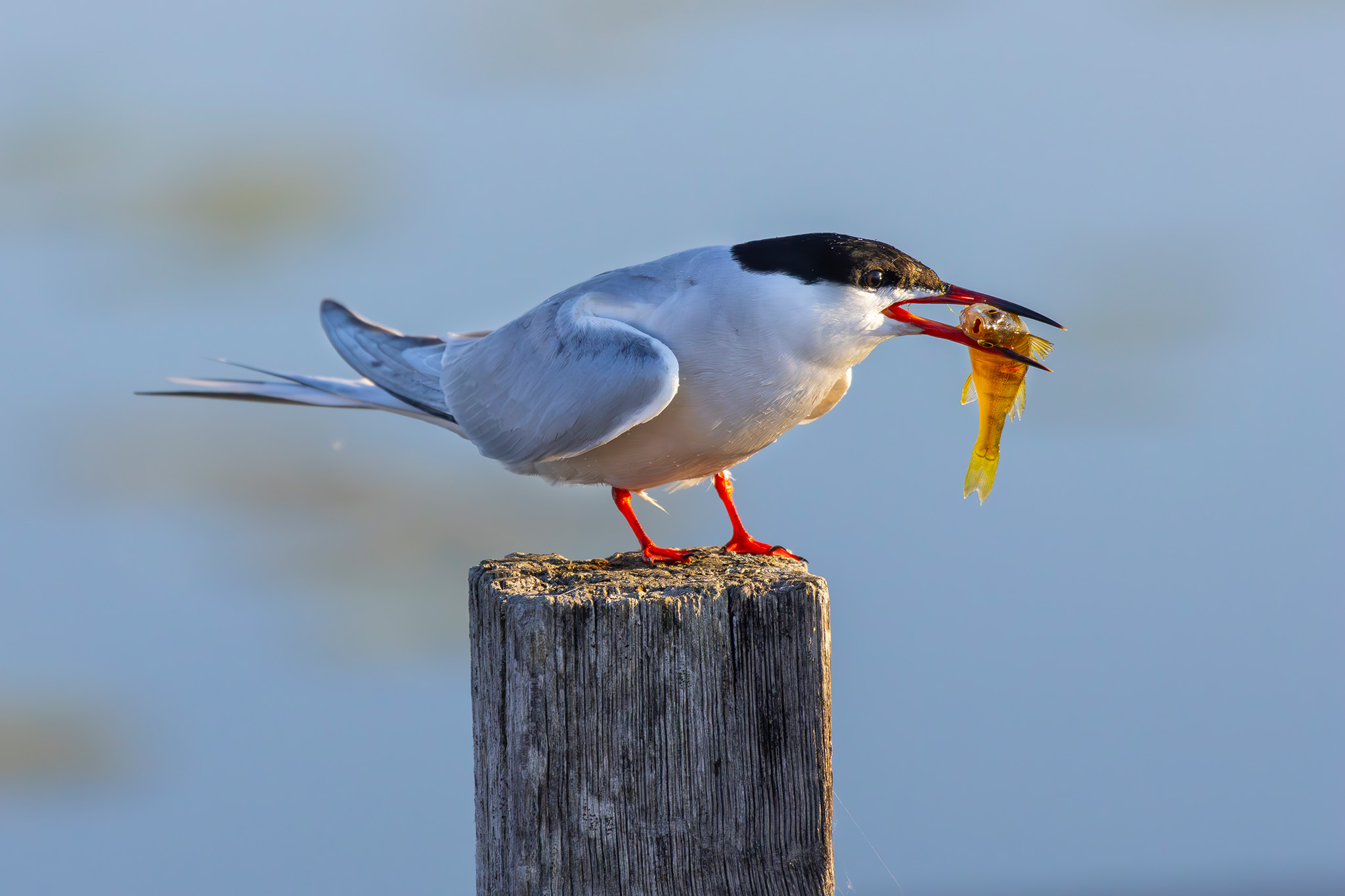 Küstenseschwalbe mit Barsch, Federsee