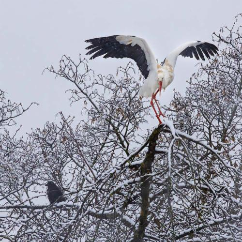 Überwinternder Weißstorch im Blühenden Barock, Stuttgart